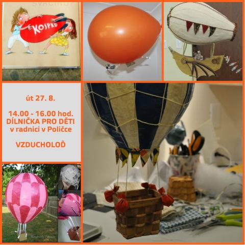 VZDUCHOLOĎ – nechte se vtáhnout do příběhů Kosprda a Telecí a vytvořte si vzducholoď podobnou té jejich, která se stane nápaditou dekorací dětského pokoje. Vhodné pro děti od 8 let. Cena zahrnuje materiál i návštěvu výstavy Lichožroutka Galina Miklínová.