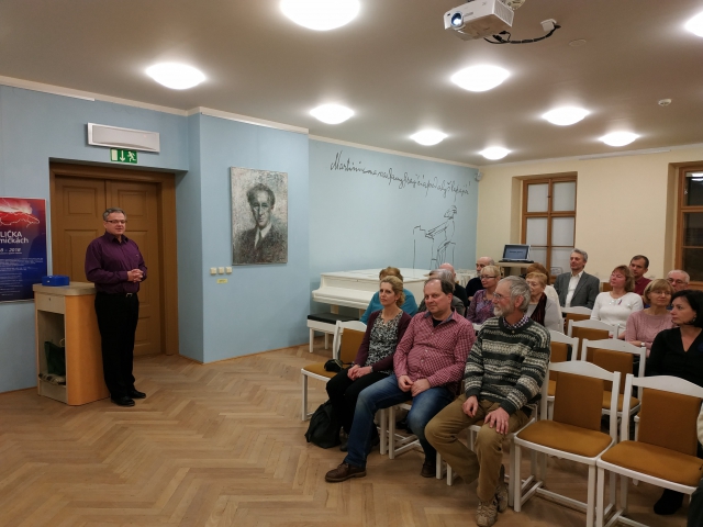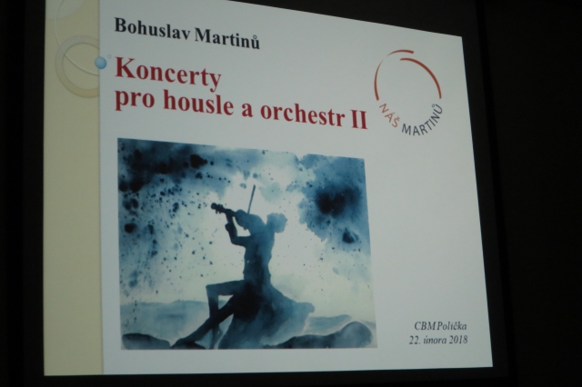Po velkém zážitku, kdy se našemu spolku podařilo v Poličce uvést premiérové promítání dokumentárního filmu BBC o životě a díle B. Martinů Music of Exile, poté, kdy se v přeplněném sále Tylova domu mohli diváci osobně setkat a besedovat s tvůrci filmu A. Wilkinsonem a B. Largem i s účinkujícími J. Navrátilem a J. Vášou - a my se chvíli cítili tak trochu „světoví“….. vrátily se naše pořady do komorního prostředí sálku CBM.